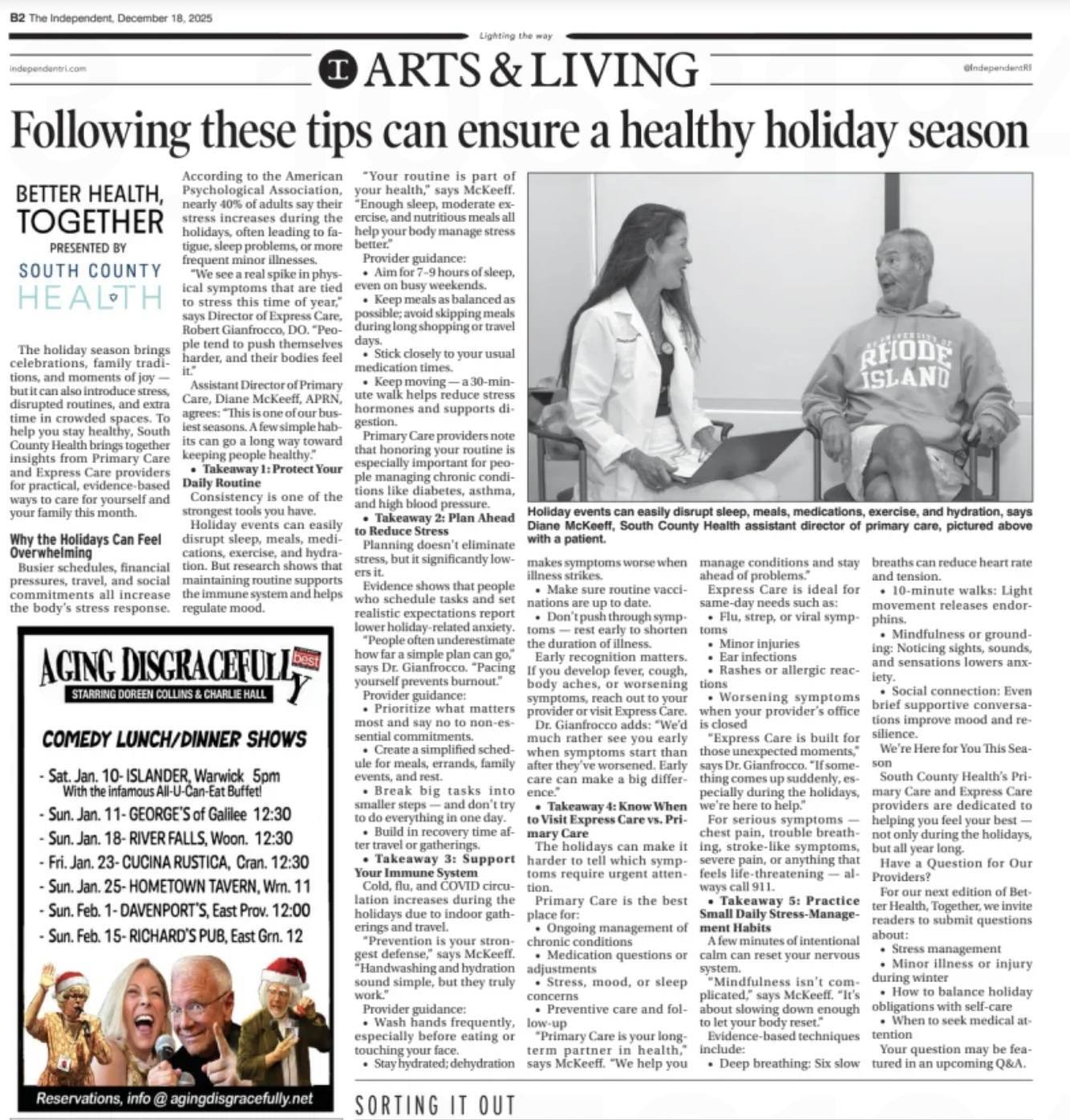 In our latest Better Health, Together column in The Independent, South County Health providers Robert G. Gianfrocco, DO, Director of Express Care, and Diane McKeeff, APRN, Assistant Director of Primary Care, share strategies to stay healthy all season long.